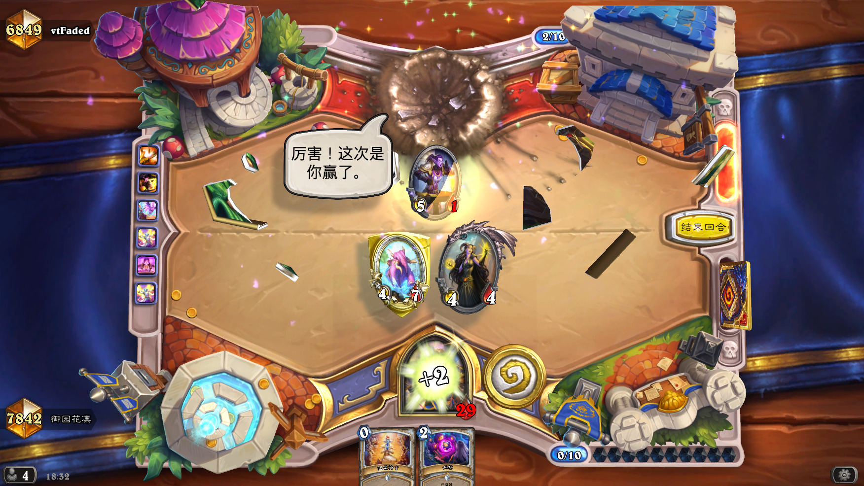 另外,对阵任务萨在手上没有倦怠光波时除奇致胜是没有用的,对方的随从多为偶数攻击力,而狂乱、灵魂之镜和暗言术:毁是比较好用的解牌,可以多在手里捏一些。