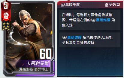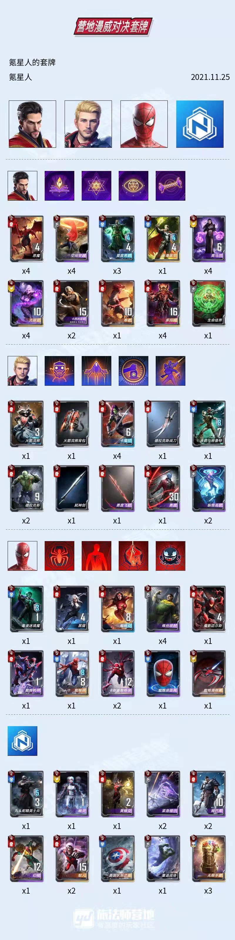 1.奇异博士的“黑暗纬度”关键字卡为核心附带可以组合的“法师”关键字卡。“空间穿越”“莫度男爵”“巫毒医生”“克丽亚”“奥马儿”“卡西利亚斯”“多玛姆”
