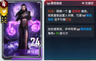 奥马尔(妈妈)X4核心卡之一,打出黑化一个进攻型角色,并且每回合强化手牌中的打手。