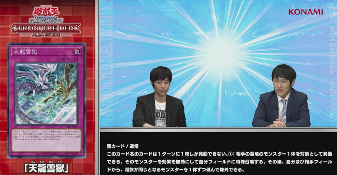 ①:自己的主要阶段1开始时,将自己的额外牌组的里侧表示的卡3张或者是6张随机以里侧表示除外可以发动。每除外3张卡,自己从牌组抽1张。此卡发动后,直至回合结束时为止自己不可以卡的效果抽牌。