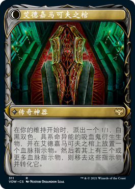 A: 我想是的。遭魅新郎艾德嘉是一张坟墓场中的生物牌,所以挖坟人囚笼会阻止它进入战场。它作为一个神器进战场并不会影响挖坟人囚笼直接阻止它被移回战场。
