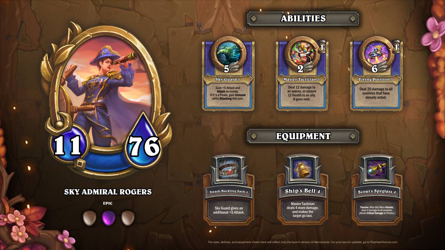 - 侦查望远镜4:被动:在此佣兵攻击后,对所有敌人造成4点伤害。(对海盗造成暴击伤害。)