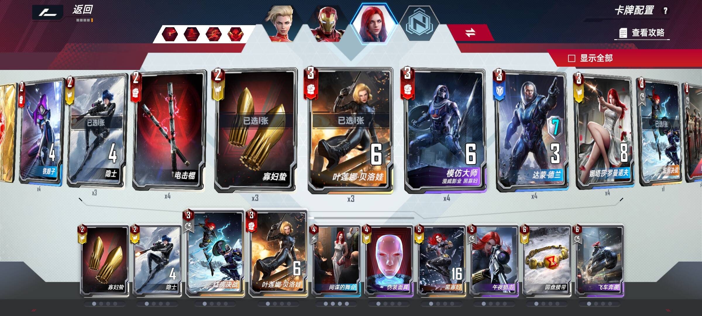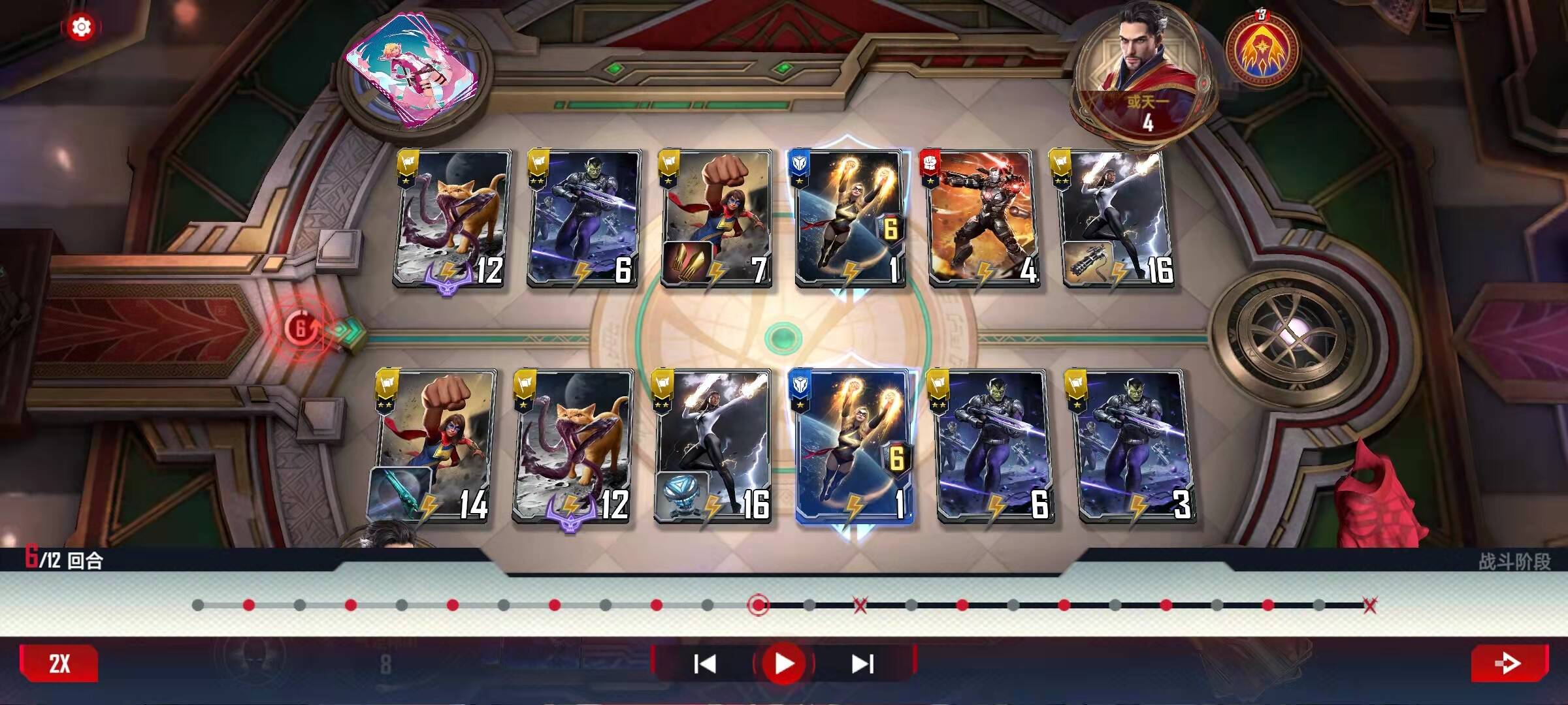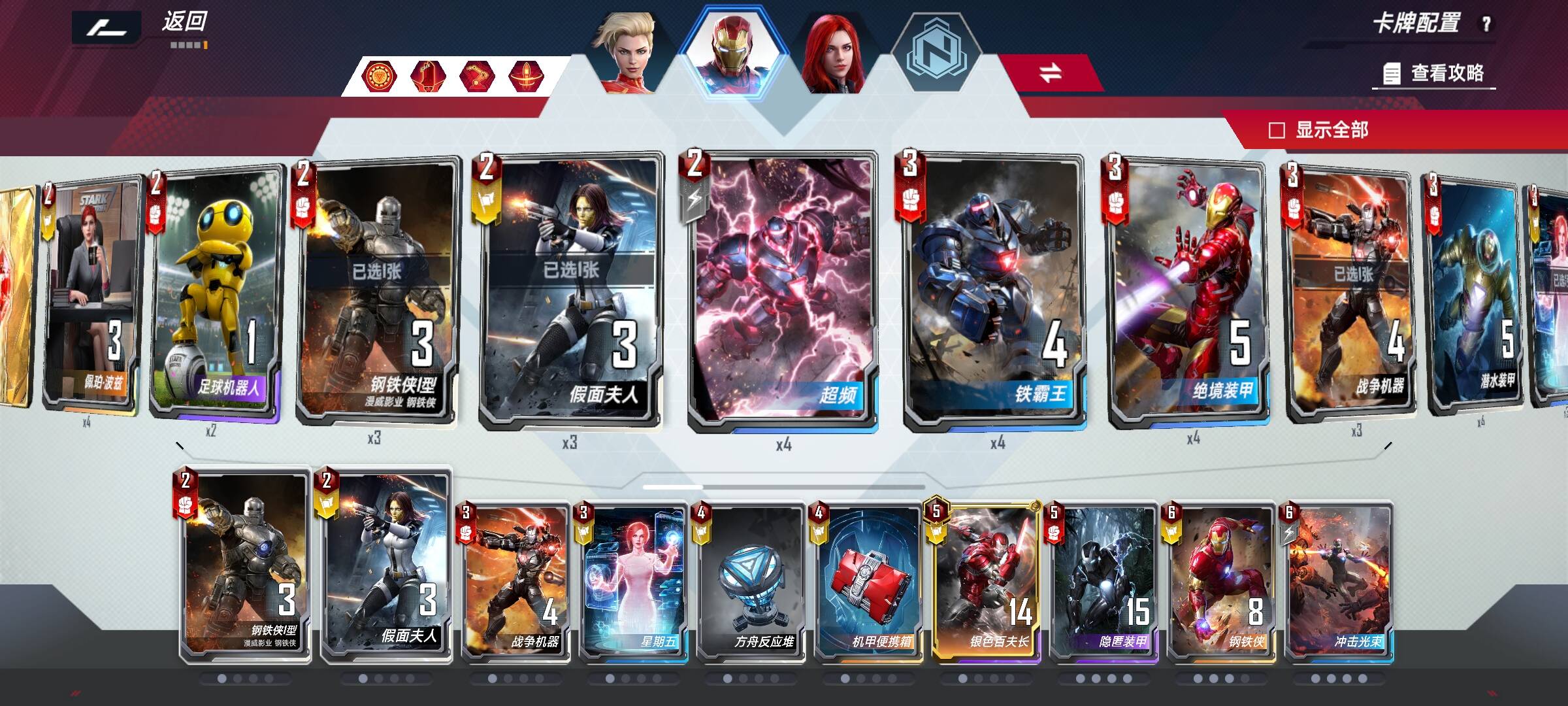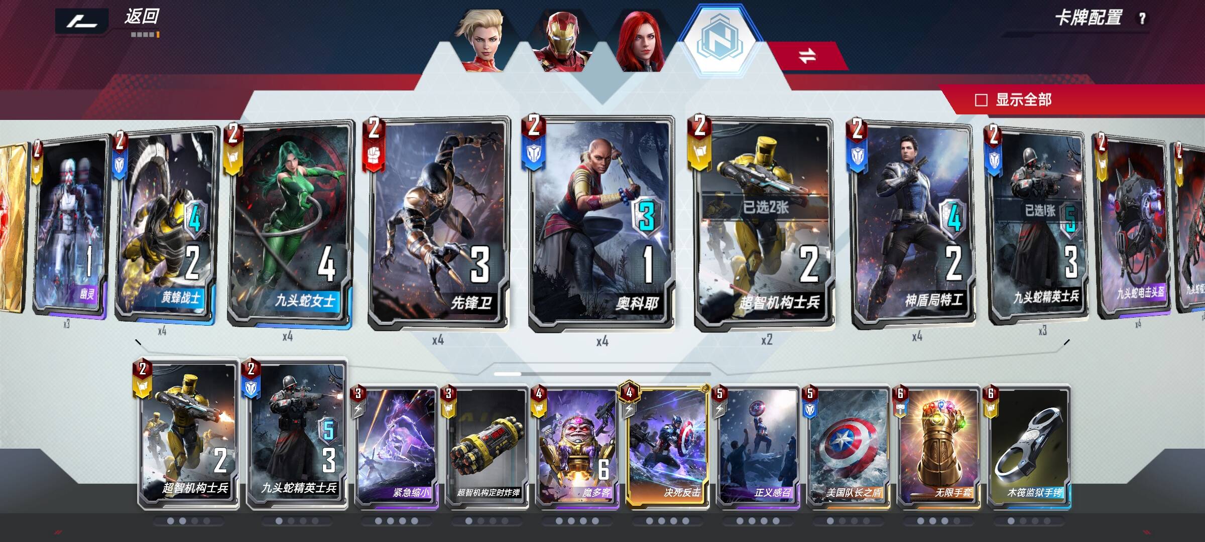 钢铁侠2本这里选用了性价比最高的两个成长怪,不喜欢的人可以替换掉钢铁侠1型。如果假面夫人前期没来,4本升五本的时候,条件允许尽量蹭一次血量,不免1血伏笔。大部分情况下,漫威对决每回合操作都是先卖怪,刷牌,最后再上怪,然后再升本。先上怪,再升本,切记!切记!