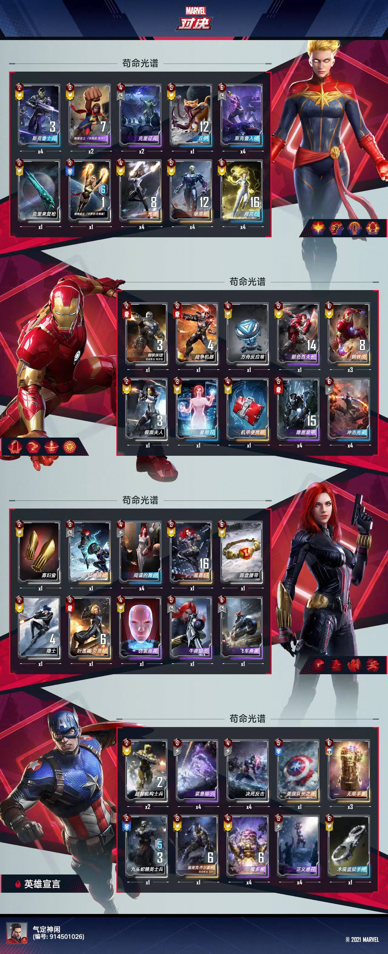 惊奇女士卡罗尔(坚甲盾)只需要1张,和斯克鲁士兵组成中期的防御力量。一般惊奇女士在场都卖掉九头蛇精英士兵。后期可佩带美国队长盾成为猫粮,但需要谨慎思考是采取“猫吃石”还是“猫吃盾”思路,毕竟卡罗尔只有一个,一旦佩带美盾就无法取下。卡罗尔一般在场至最终决战,除非场上出现场上6费太多格子不够问题,一般不考虑**罗尔。