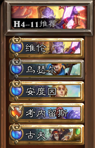 正常打如果圣光三人组练度一致,安度因带装备1的话,安度因血最少是被集火的对象,乌瑟尔血最多也可以吃到点名,维纶不死机关枪是可以打出足足7发的,后面带点菜刀随便砍砍伤害就够了。冲关用老罗姆维纶安度因就够了,是真的稳如老狗。古夫是用来当菜刀补伤害的,求稳带小吼弗丁也可以,记得打Boss的时候把乌瑟尔或者菜刀往中间放。