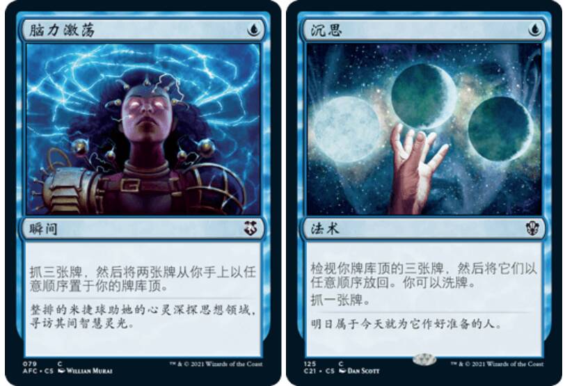 看牌最深的一张牌,能最高概率找到需要的牌。不像脑激或者注定,沉思可以看四张牌。所以在一个有沉思脑激和注定的手,最好时先用沉思。和脑激一样,沉思也最好能和找地地或其他洗牌手段配合。沉思自己也是一种洗牌手段,可以配合脑激,虽然这并不理想。