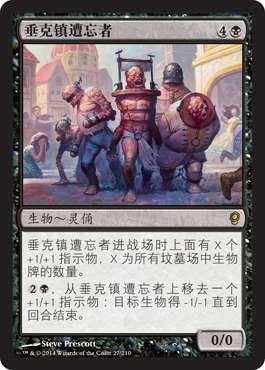 Q:爷操控一个垂克镇遭忘者,上面有六个+1/+1指示物。如果我用远见拼接师基拉夫的异能牺牲它,派出的是0/0还是6/6?