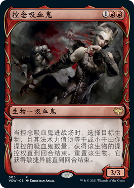 A:不,不会。控念吸血鬼的异能只在两个时间点检查你操控吸血鬼的数量:异能进堆叠时,以及异能结算时。你获得对手生物的操控权后,你有多少吸血鬼便不再重要。