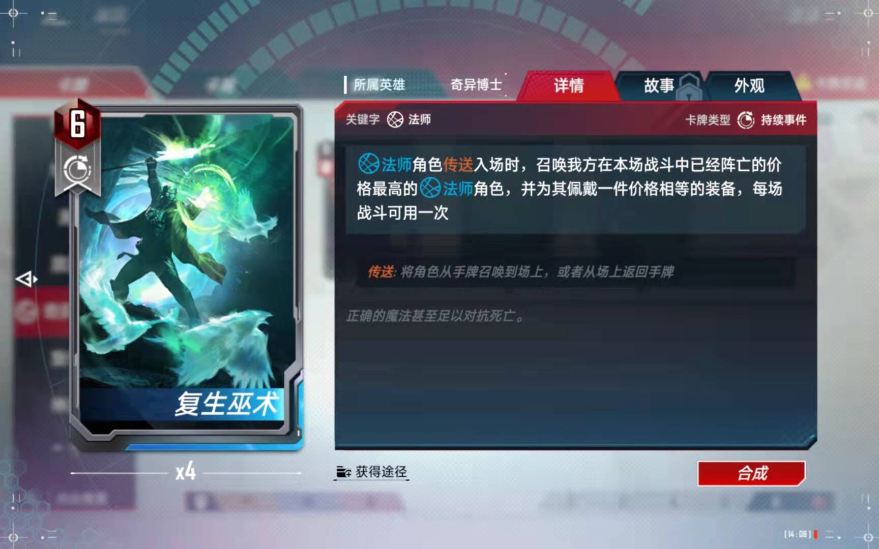 这张卡也是法师传送流经常带的卡,只要我方角色被攻击了,就可以从手牌直接召唤卡牌入场,但是缺点也有,就是后期都要换成复生,事件卡池完全不够用。