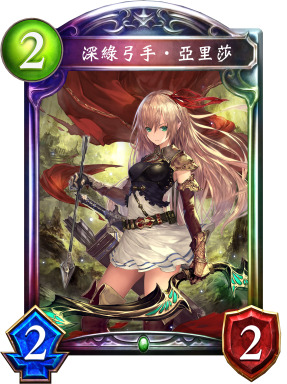 深绿弓手·亚里莎能召唤森林守卫之弓,作为抽不到异幻·天宫人马时的替代品,配合原始的恶神、迅风妖精高效过牌。