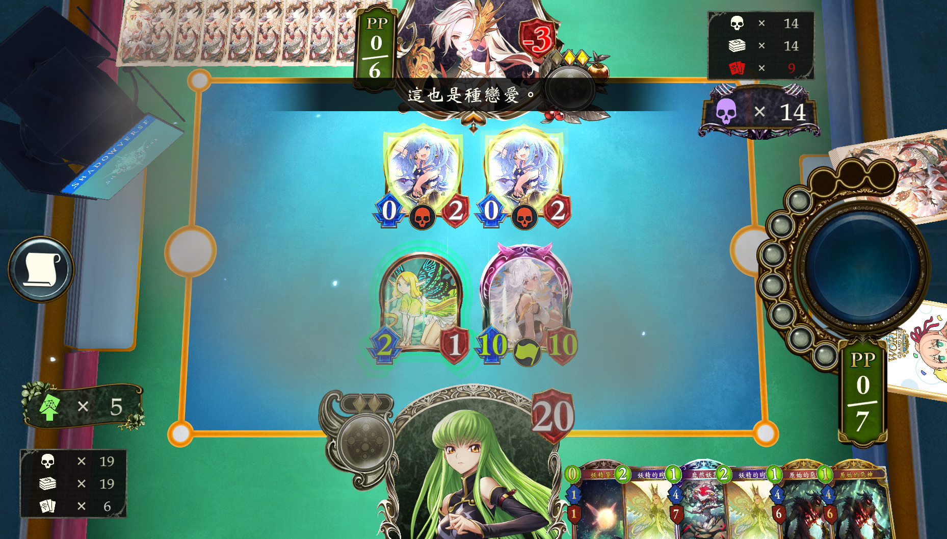 如果抢血不顺,优先走OTK路线。保留1张0费牌到第7回合,用于配合拉缇卡、眴焕和爆能天使的加护。适当保留人马、妖花本体,用于拖延时间。没有加护的话,牧地本体召唤的载具也能配合拉缇卡和眴焕打20点斩杀。牧地本体召唤的载具还可用于参与斩杀超过20血的对手。