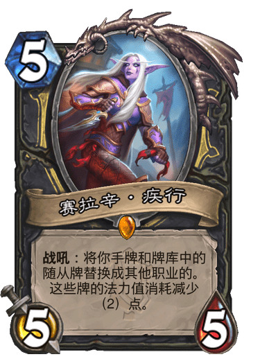 126807:战吼:将你手牌和牌库中的随从牌替换成另一职业的。这些牌的法力值消耗减少(2)点。