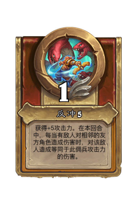 135540:获得+5攻击力。在本回合中,每当有敌人对相邻的友方角色造成伤害时,对该敌人造成等同于此佣兵攻击力的伤害。