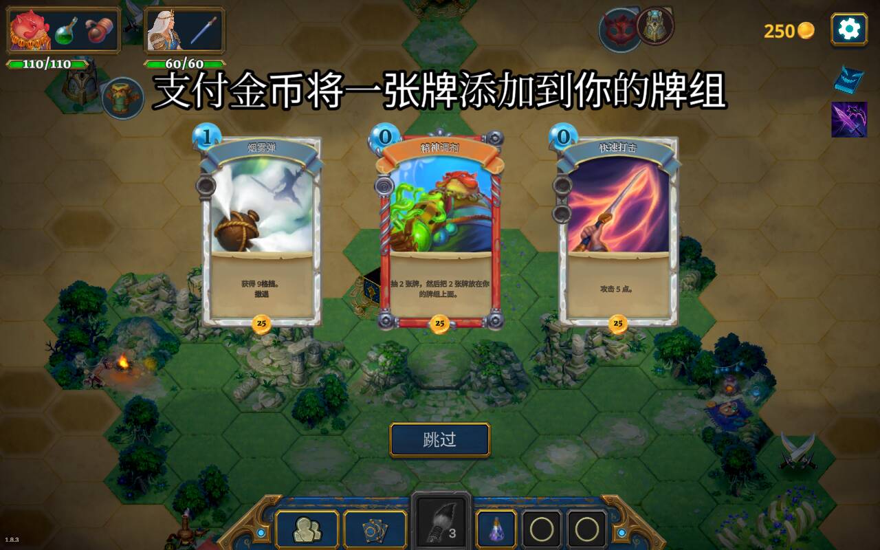 卡牌商店。3选一购买卡牌,特殊情况不能跳过。
