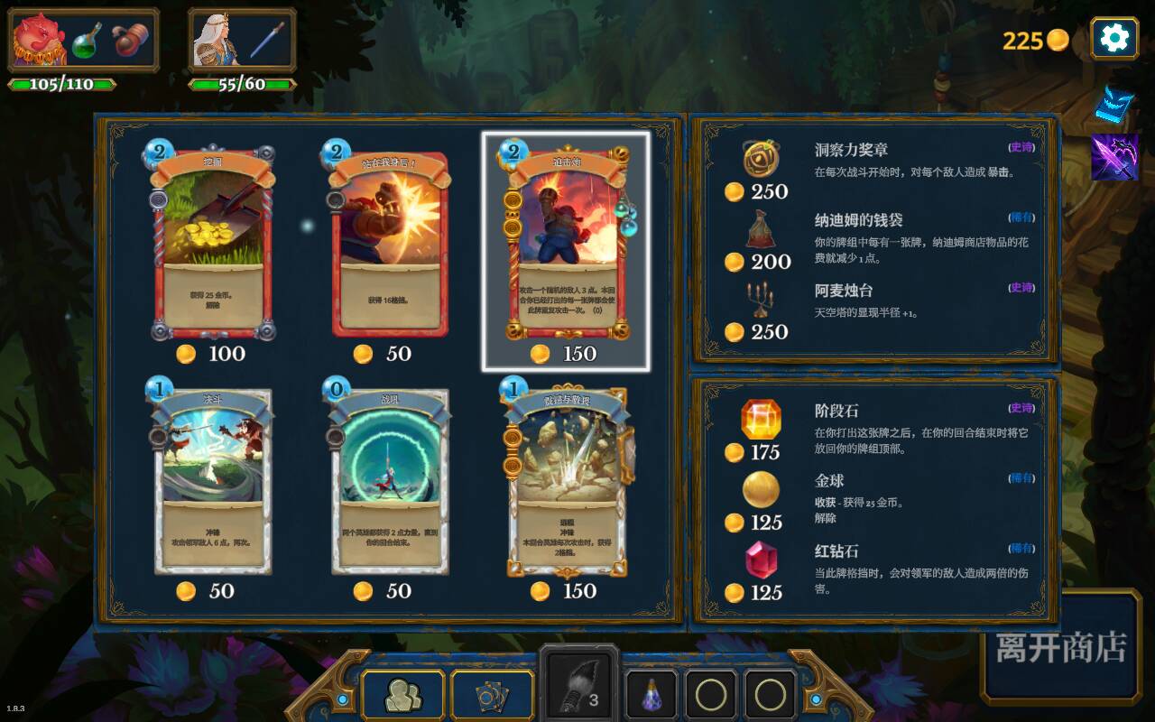 宝物宝石卡牌商店,可以购买强力宝物,助你通关