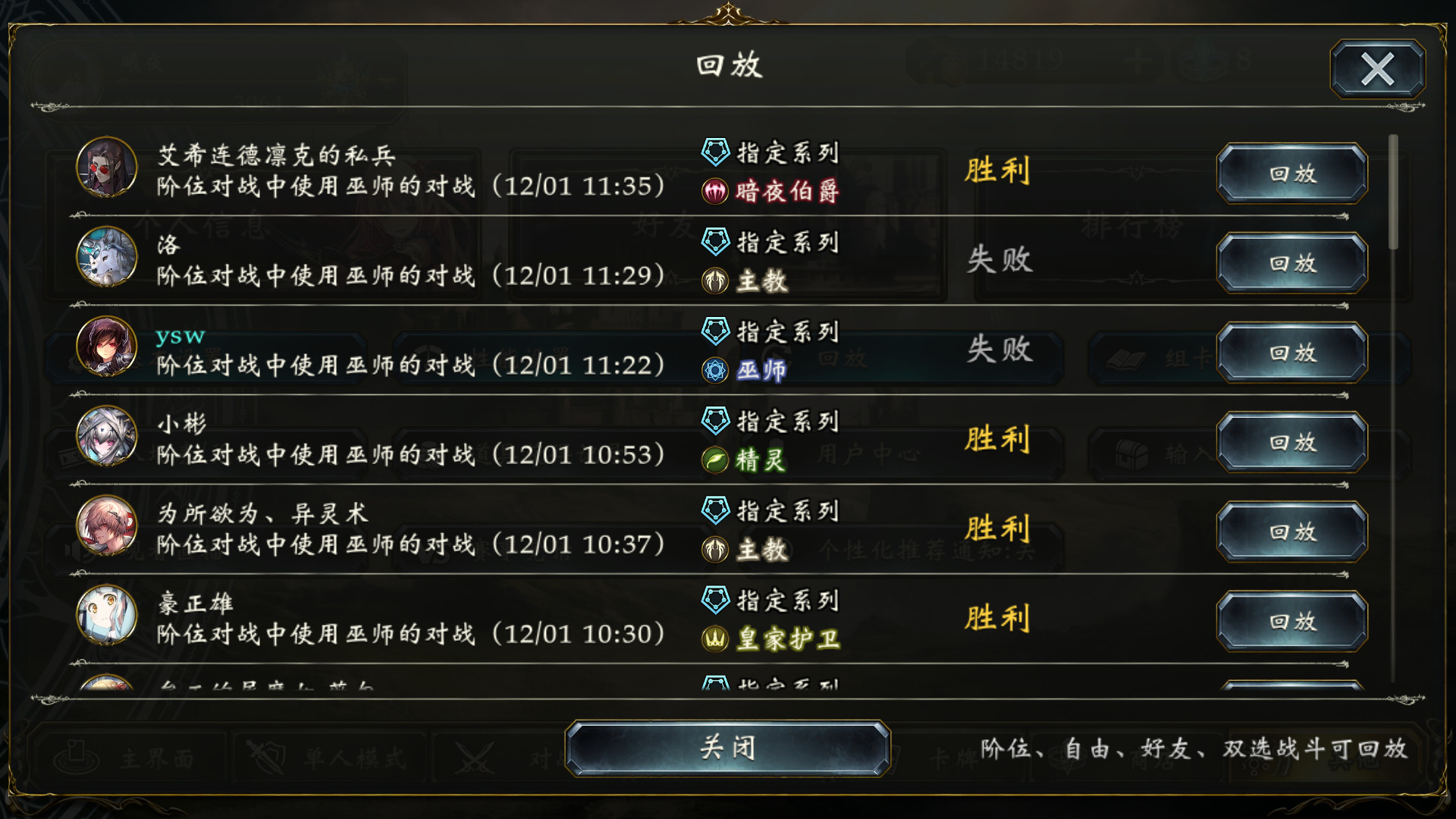 总的来说,死灵为攻,我们为守,对局属于比较漫长的拉锯消耗战,常常打到牌库剩余不到10张牌。分段斩杀我们是不怕的,他打一次我们奶一次,只要化解几波死骸的攻势,我们就胜券在握。什么,你说被对面双死骸+风军满血斩了?都这么胡了就让他赢吧。