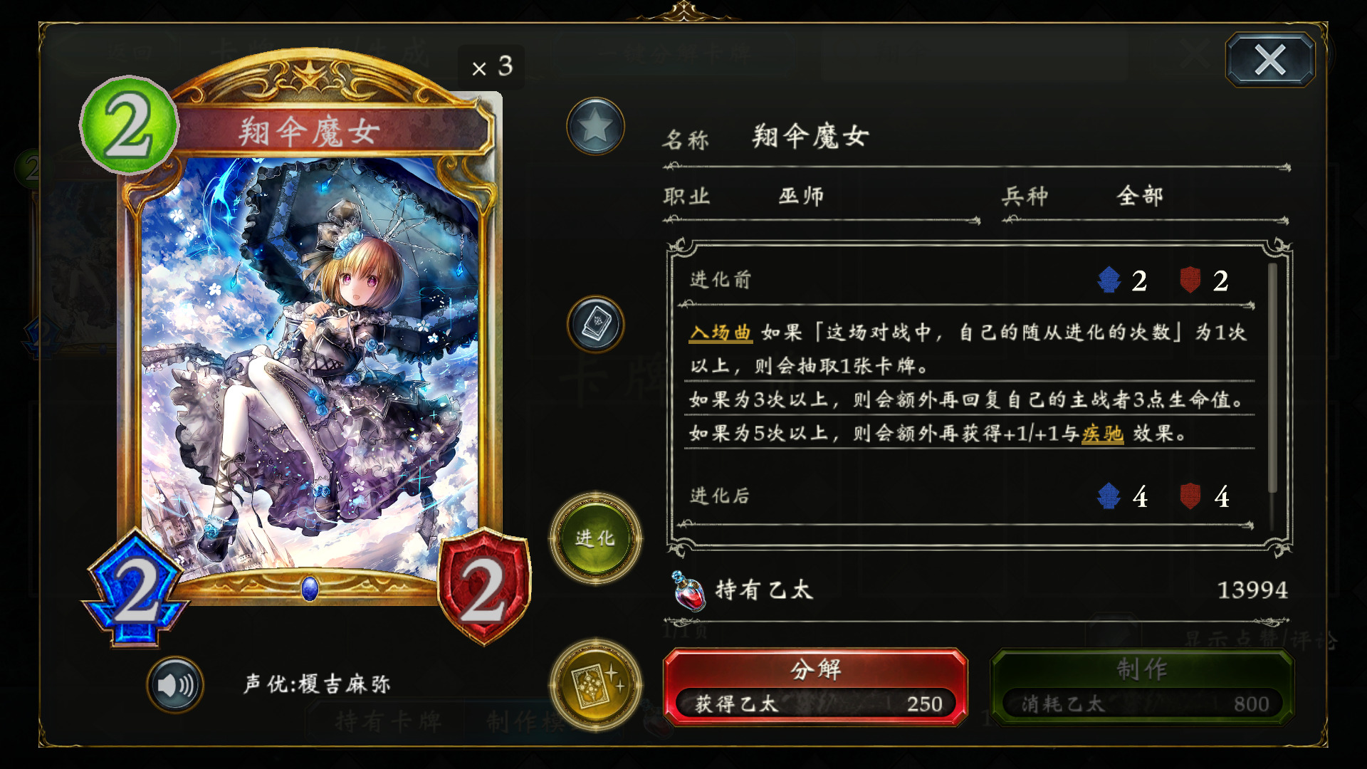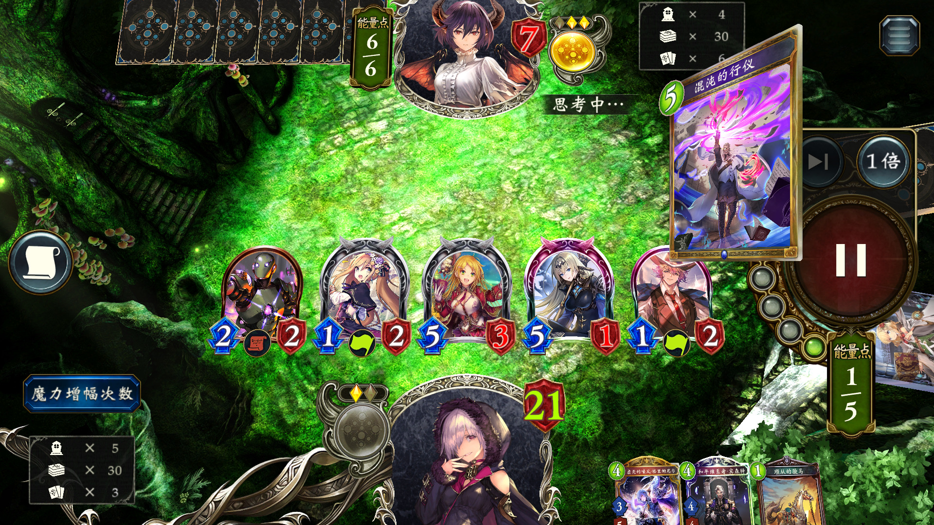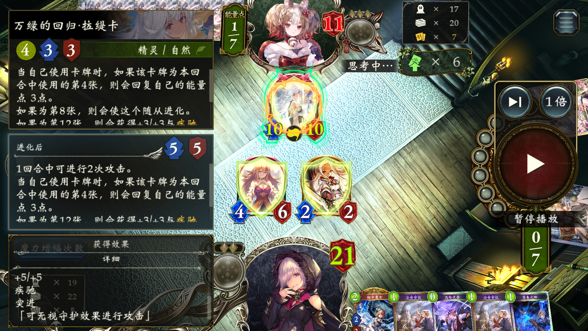 然后下回合,手动进化厨师,再利用苍奏+魔术师刷够5进化,翔伞踢脸叫杀。