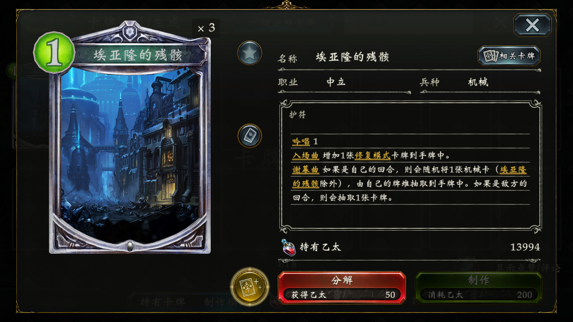 埃亚隆的残骸 :定向检索机械卡,外送一张修复模式。我们卡组的机械卡不多,也就4种,检索稳定性还是不错的。有效解决二姐鸽了的局面。满编。