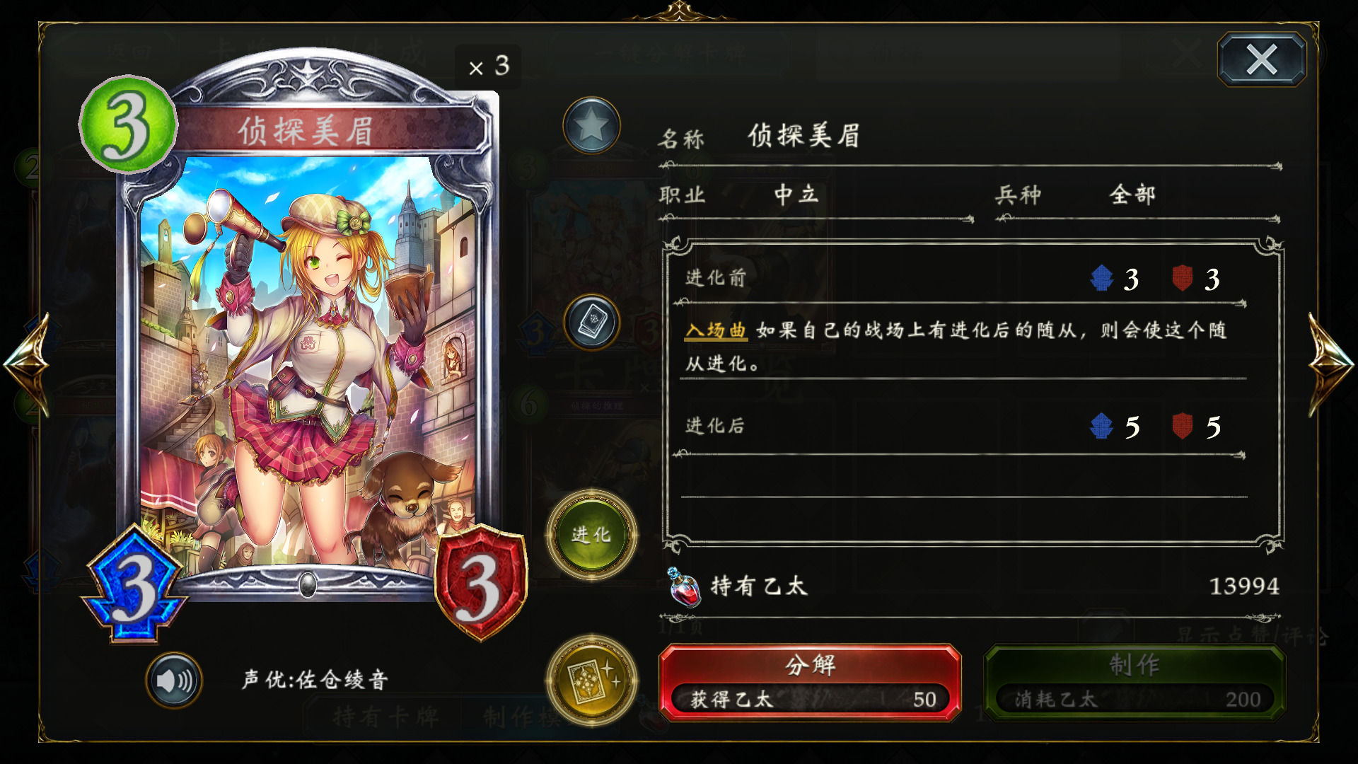 侦探美眉:因为有魔术师的存在,美眉的触发条件不要太简单,本身333标准身材前期裸下也不亏,因此是最适合的中立进化组件。
