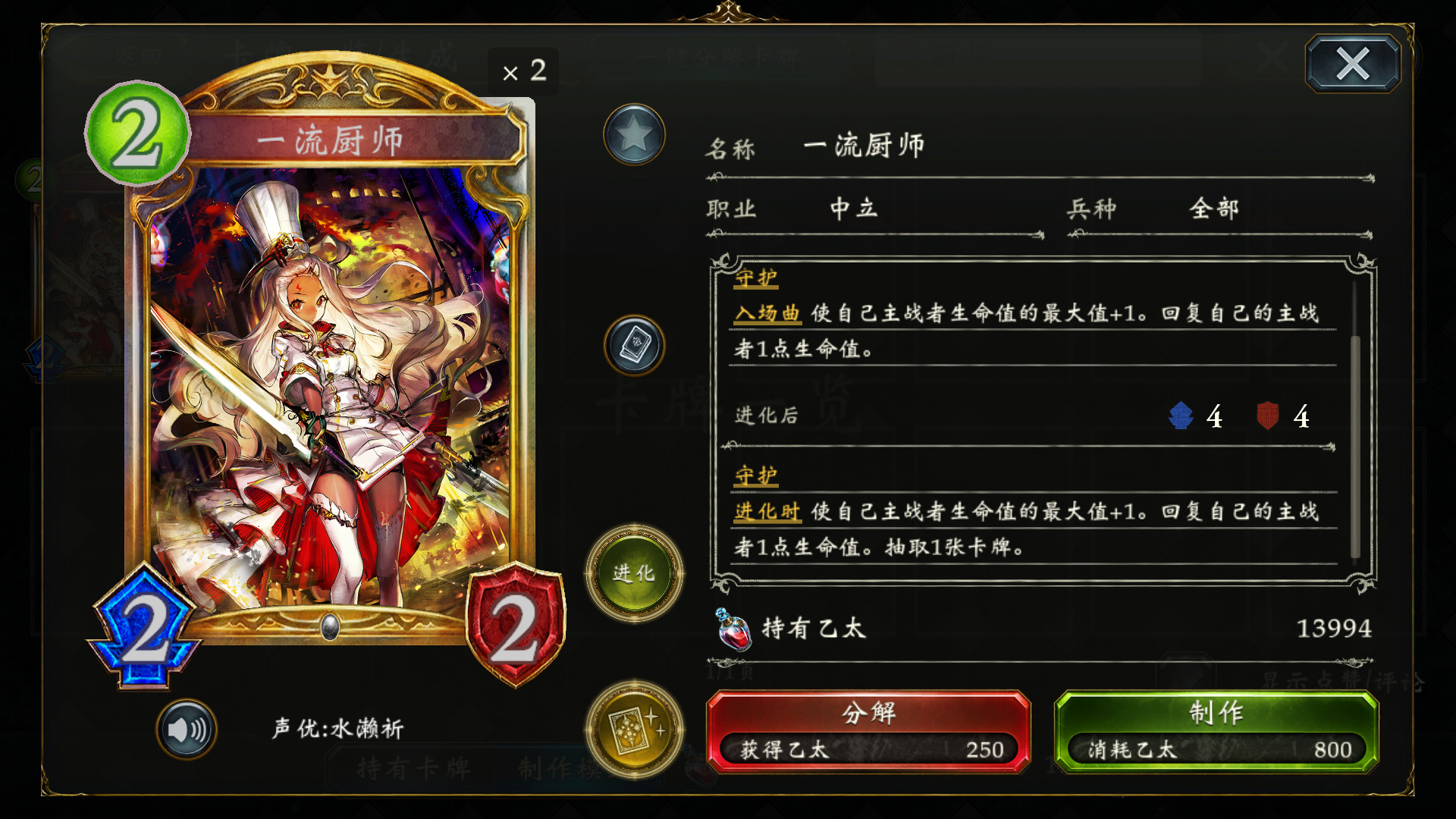 妖精对局中,一流厨师 非常重要,开局抽到直接留,后手可以给进化点,不用犹豫。