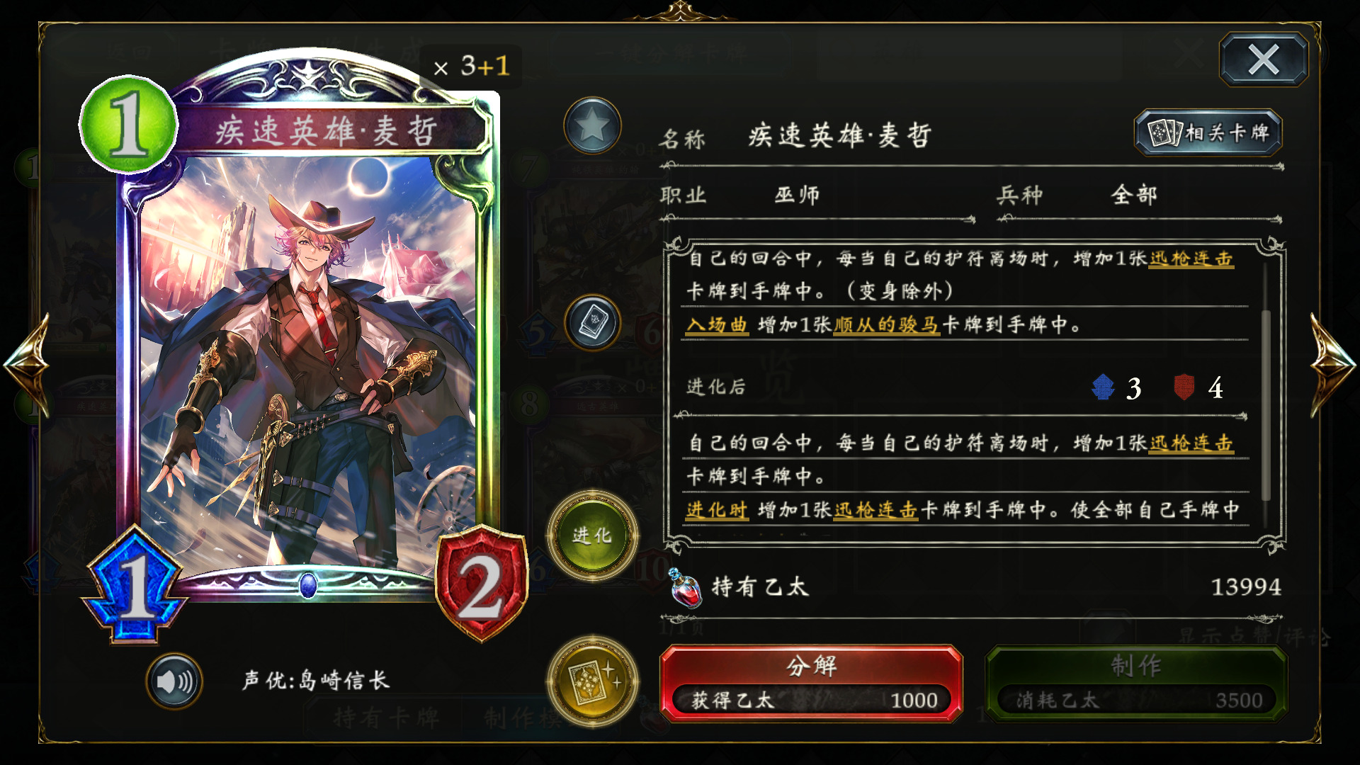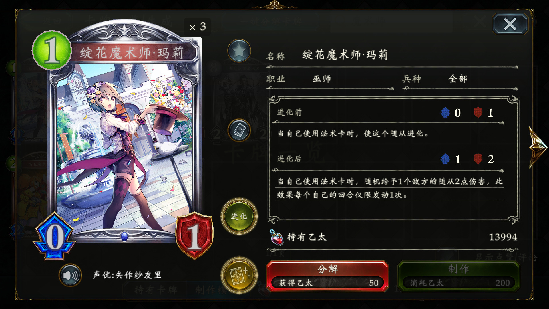 玛绮斯的魔导士 :朴实无华的过牌,一般把零费魔导士留在手里,待配合疾速英雄·麦哲使用,或者在6~7C拍出,手动进化,刷够5次,接朱庇特,带2。