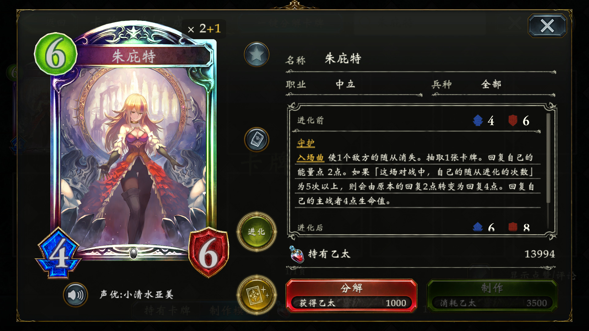 核心思路是利用卡牌互相配合快速积攒进化次数,达成5次以上,触发强力特效,获取大量资源,从而不断奶血苟活耗尽对手资源获胜,或用爆发性的直伤将其带走。