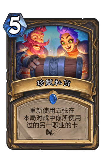 珍藏私货的出现无疑是标准剽窃贼的亮点,狂野人称小苔丝,标准就是苔丝本身,遗憾的是作为一张五费卡或许会有出场机会,但是又可能会拖节奏,节奏方面最大的亮点是如果想要打出这张卡是可以控制的,狂野中如果通过珠宝师满头包后再挂一头包。遗憾的还是那随机的剽窃体系,太过随机而导致对于这张卡虽然可控卡但是不可控质量。