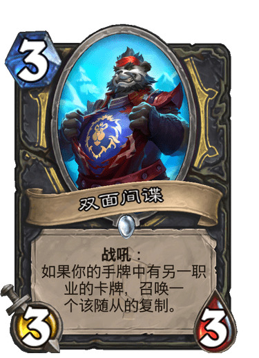 作为一张旧卡,她的强度或许在这轮的剽窃贼补强才能体现出效果(仅标准),标准剽窃贼缺少前期获得另一职业卡的手段(三张),这对于触发新卡双面间谍的强度来说肯定是不理想的,变装大师自带的一轮效果在未获的其他职业的卡情况下仍可以触发双面间谍的强度,甚至还能对蛮爪豺狼人进行减费效果,本身的身材虽不理想,但是经过赛拉幸·疾行的效果后则一切重来。