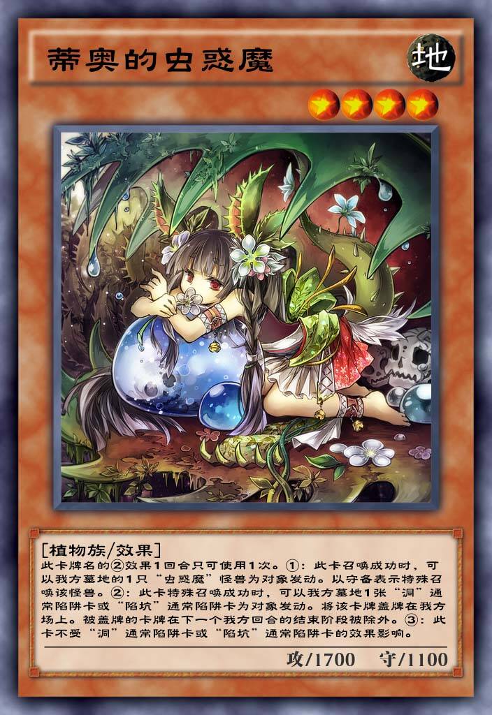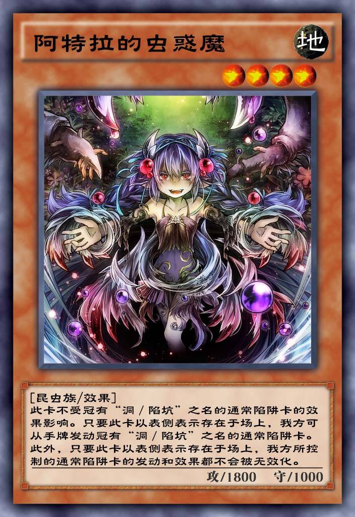 虫妹卡组比较核心的一张卡,可以通常召唤拉墓地的虫妹本家,自己特殊召唤的时候可以回收陷阱。虫妹卡组由于有新出的几张落穴和之前的炼狱的落穴都比较强力所以可以玩一玩。除了本身自己打点过低。