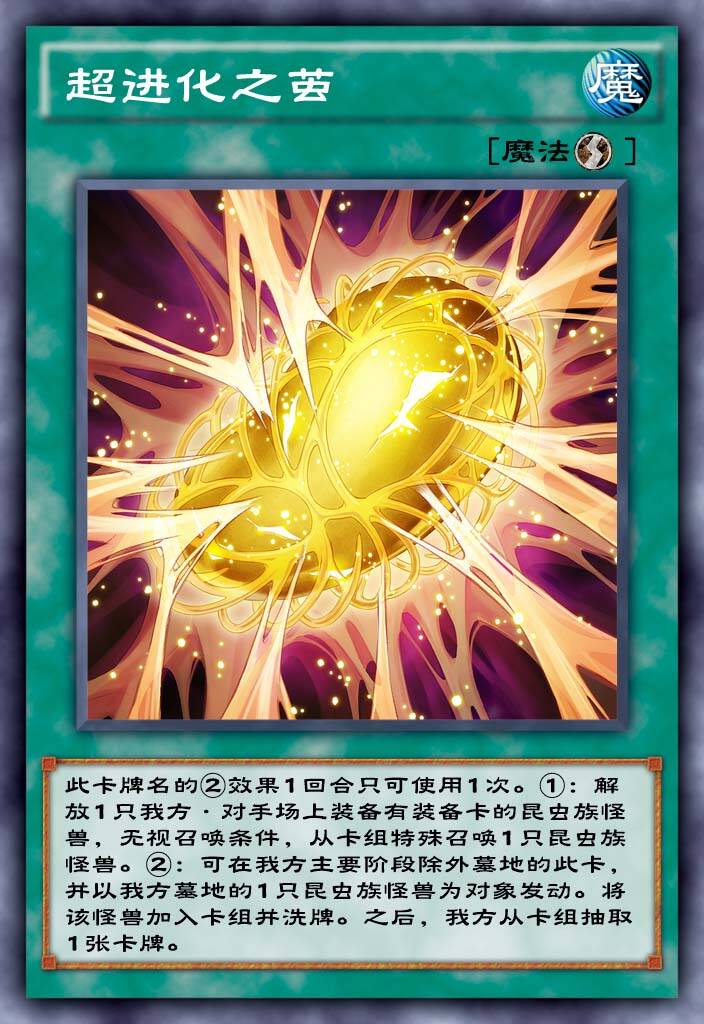 昆虫族的魔法补强,可以调度卡组的昆虫怪兽入手,但是条件不是那么容易达成,不是那么好用。