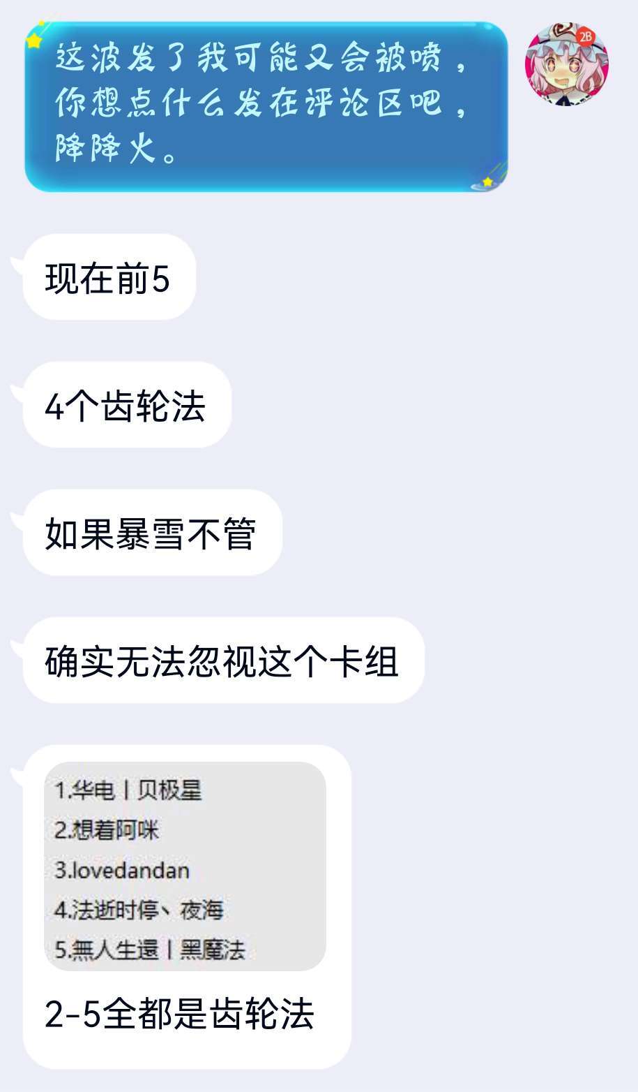 来自高分段被针对时博弈的经验。注意,在月榜分段外都建议采取双冰箱+双魔术戏法+双远古雕文+打开时空之门的7卡填充式构筑。