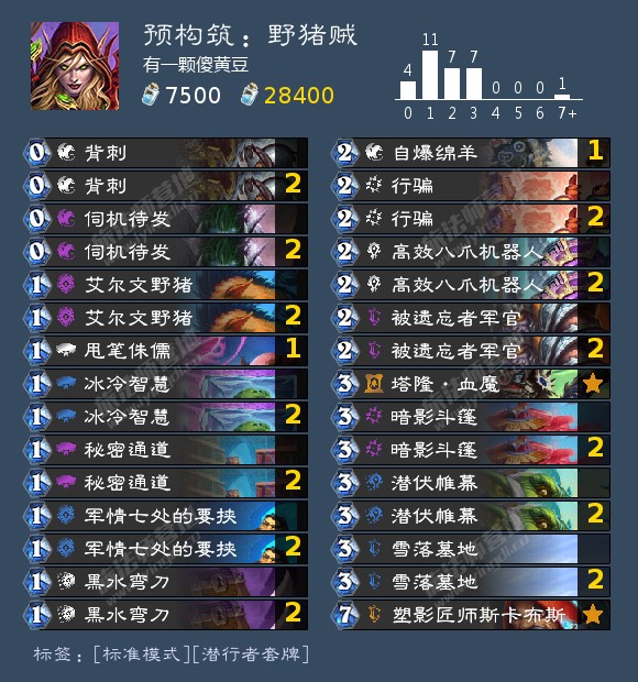 本次新版本给贼补充了许多亡语卡还有一张感觉上就是等削弱的英雄卡,脑测野猪贼得到了不少补强。