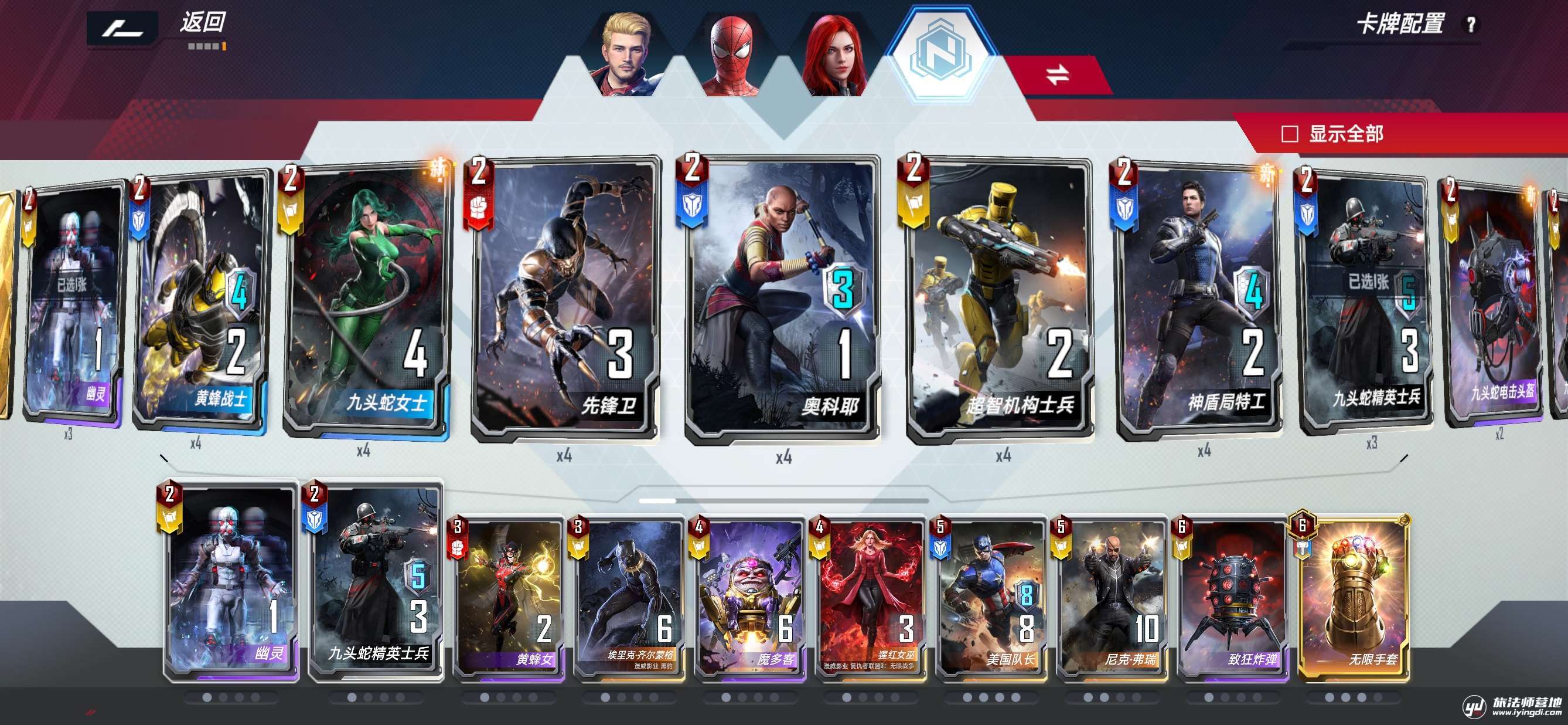 5费方面选择四张美队,四张卤蛋,但其实现在的环境来说,两张卤蛋完全够用,但我个人更喜欢带四张,八星寡妇谁不喜欢呢。
