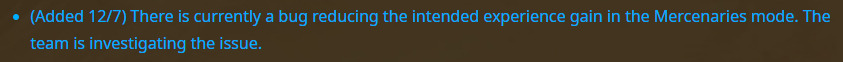 在官方宣布之前玩家社区就已经有人发现,佣兵模式PVE的经验变少了——不是佣兵等级的那个经验,是奖励路线的那个经验。佣兵PVE适合挂机涨经验,这已经是(特别是国服社区)公开的秘密。而现在大家发现经验获取将近少了一半。
