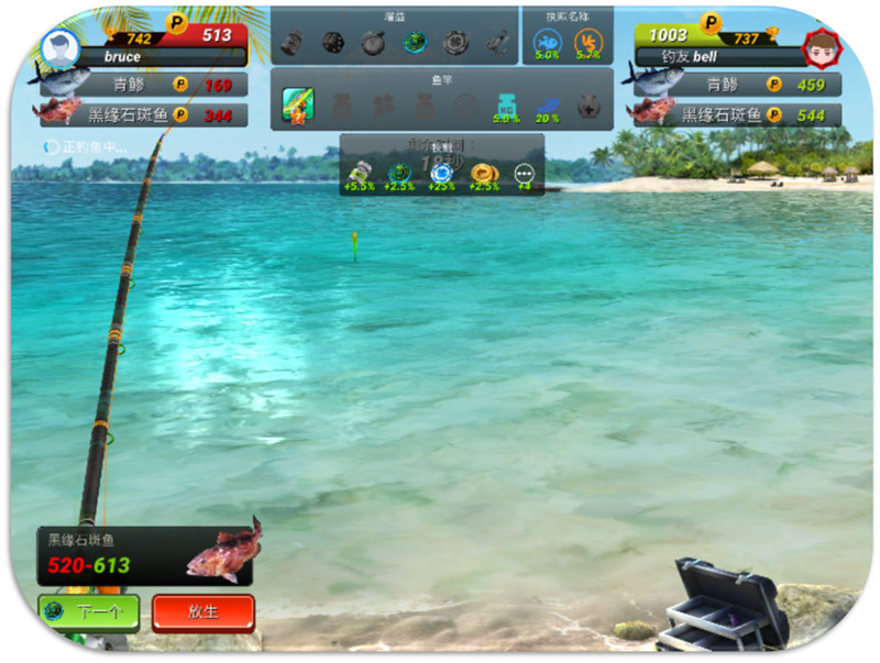 全新升级后的声呐2.0,不再需要玩家放生以后重新钓鱼。垂钓爱好者们在“冬季垂钓会”中,可以利用加强版的声呐进行更加便捷的操作,只需要轻轻点击“下一条”按钮,即可放生并且开始下一轮垂钓!
