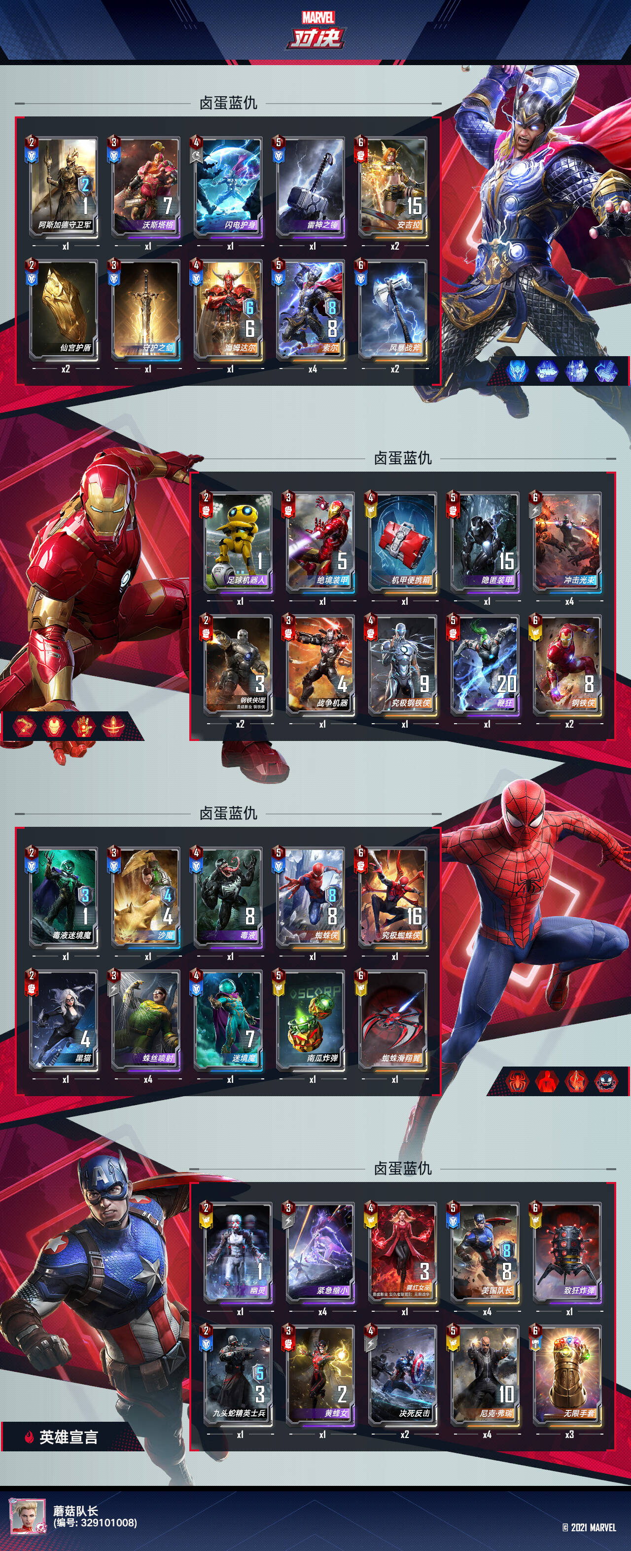 这套到后期胜利就是卤蛋翻翻,靠反击大佬索尔+叠战大佬美队&旺达每回合墨迹墨迹取胜,所以回合数是翻倍与找牌的关键,不停的过滤单卡与拖延时间就是重中之重!