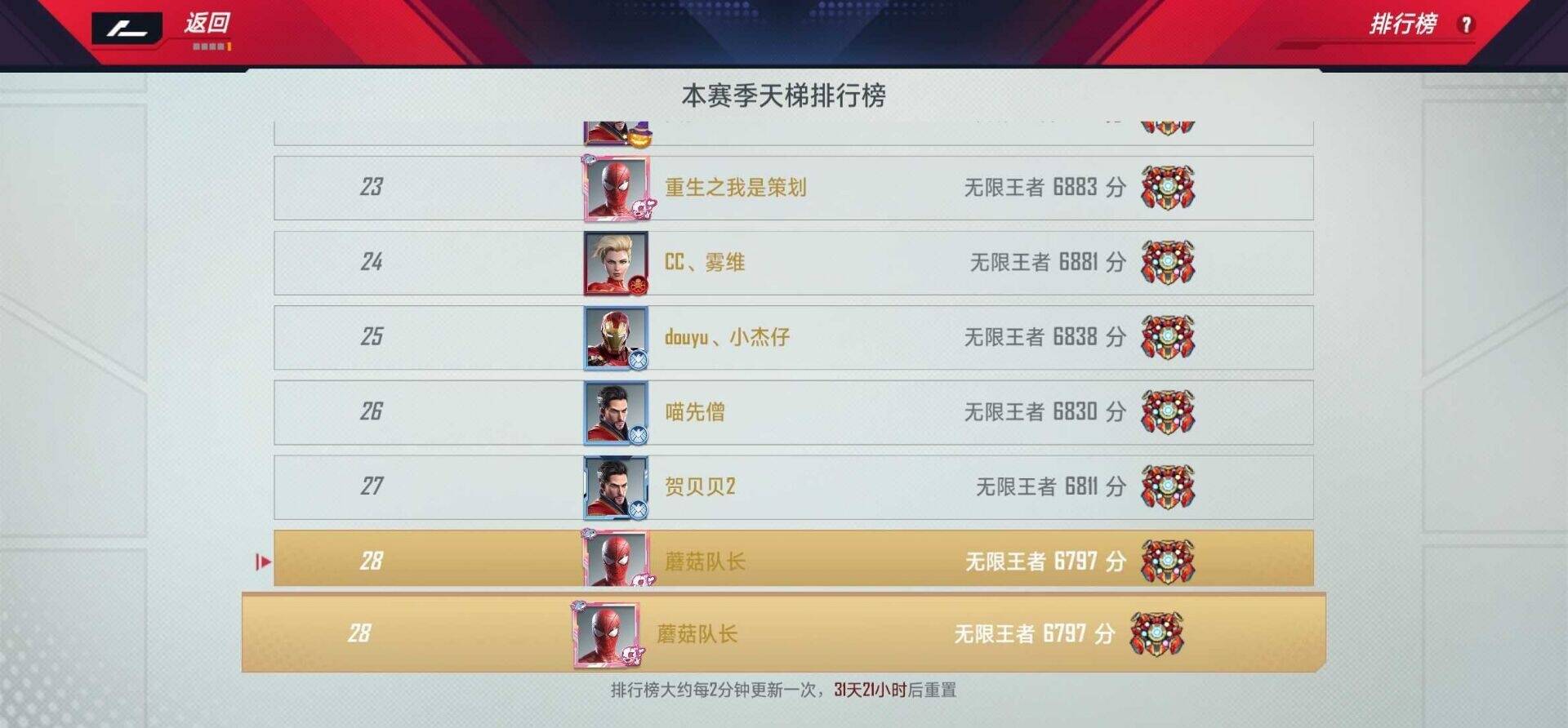 在他没与我们会晤之前我猜是1,2;2,3位;很简单刺杀蚁人环视嘛,因为我们的构成大概是:妇联+神盾局+蜘蛛+仙宫嘛,对面看出来也就是个2-3妇联的样子战力也不咋地,肯定默认你是pt妇联咯。