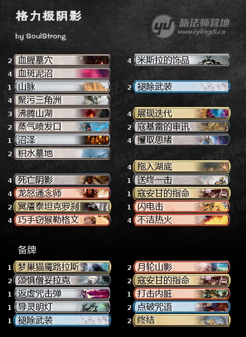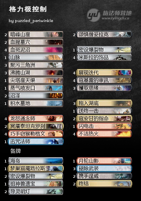 除了格影,格利极色组还有一套不带阴影偏向控制的思路,也算是沾了妥拉客的光,得以在众多幽寂中找到自己生存的空间。但是这套牌的问题点也比较明显,可以说是不太像一套控制,反而更像是节奏卡组,没有后期兜底单卡,容易打空手牌看天命,我个人不是很喜欢。