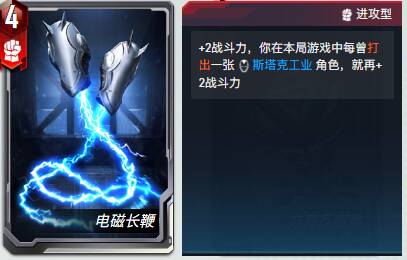 电磁长鞭的适用单位也是工具人,强势特效怪(蚁人,叶莲娜)。20个机甲才能提供40点攻击。鞭狂本身肯定是不会携带的。适用于机甲,买一个2费的足球机器人也能给鞭狂提供几十攻击力的加成。(冰酒:辣椒豹子,两个大哥带剑,一个光环,一个刷位 )懂这句话的都在用鞭狂疯狂上分。