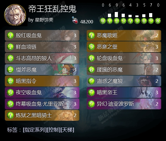 T2。对谢幕曲死、守护教、载具龙、协作皇、进化死优势,对进化法、激奏妖、OTK皇劣势。