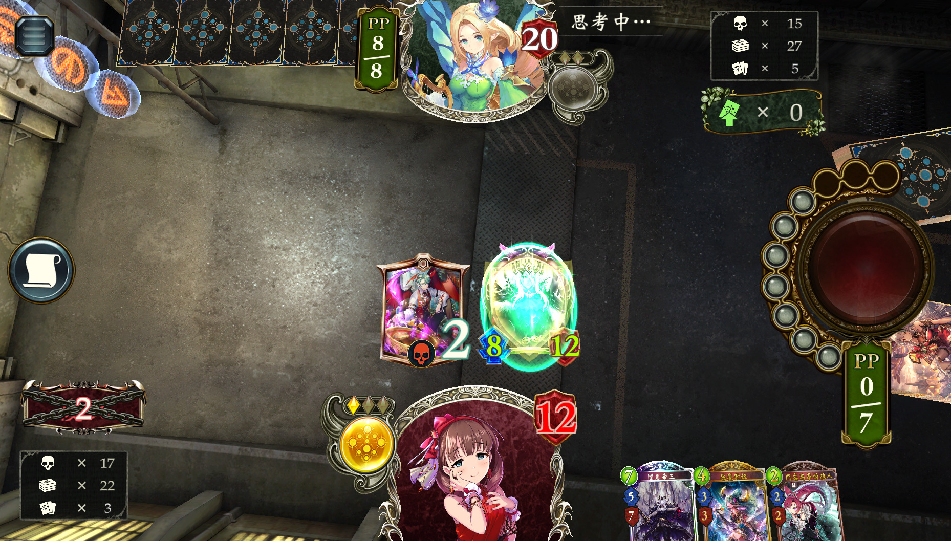 手握暗黑帝王的话,第6回合场上没有轮盘的话,优先在使用低费牌后结晶轮盘,留下魔导装甲车到下回合。对斩击妖时,如果无法叫杀,即便手中没有帝王,也应留下装甲车,赌下回合神抽。