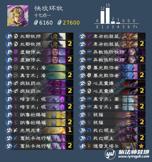 大家好,这里是十七点一。下面我将介绍一下光暗环牧这套卡组。卡组的本质是快攻,而牧师的快攻体系从暴风城以来都是以暗牧为主,主要原因是因为圣光体系的卡进攻性一直不强,在新版本中圣光体系得到了极其强大的进攻牌祝福和环的上位替代品纳鲁赐福。于是舍弃了大主教的光暗牧也因此崛起。在新版本中经过不断调整构筑,完善卡组。最终构筑在传说前30名的环境中征战100余场,胜率保持在60% ,并成功打进前十。