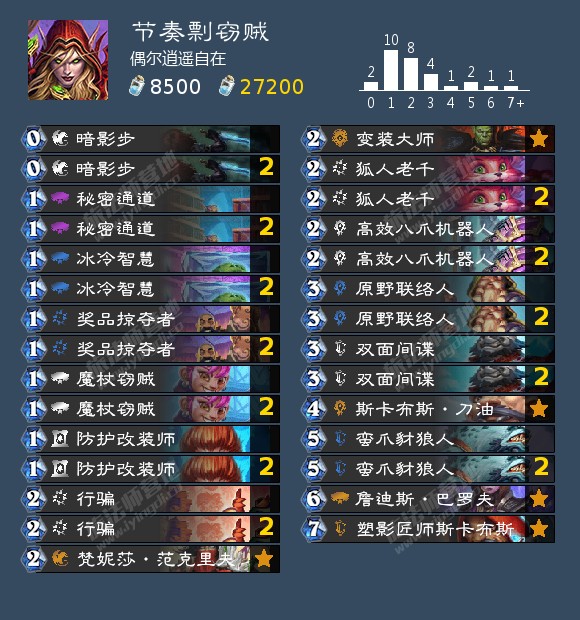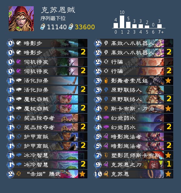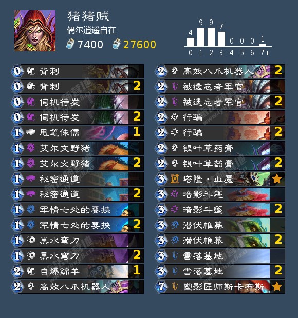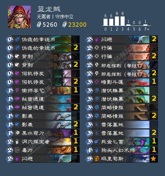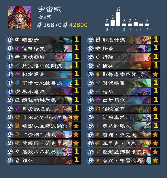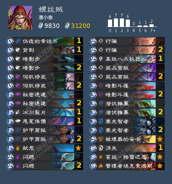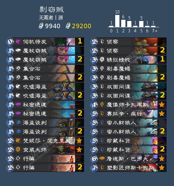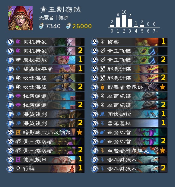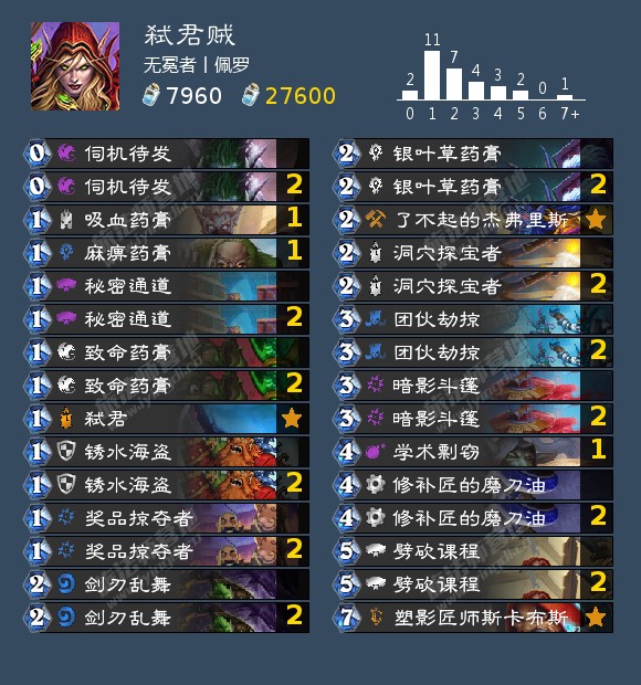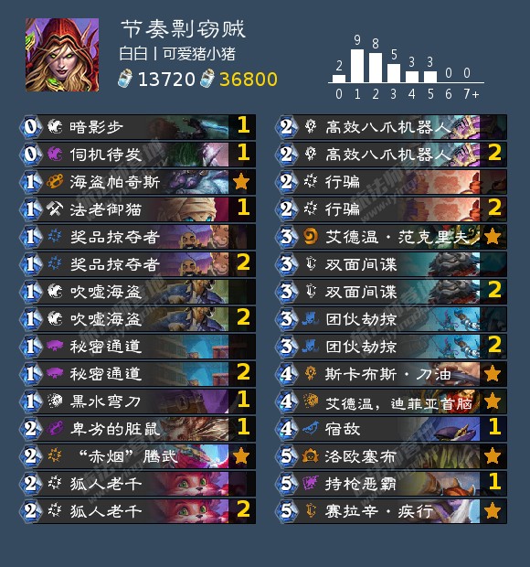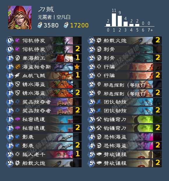 来自【无冕者丨空凡白】的刀贼,他用这套卡组在传说2500划水