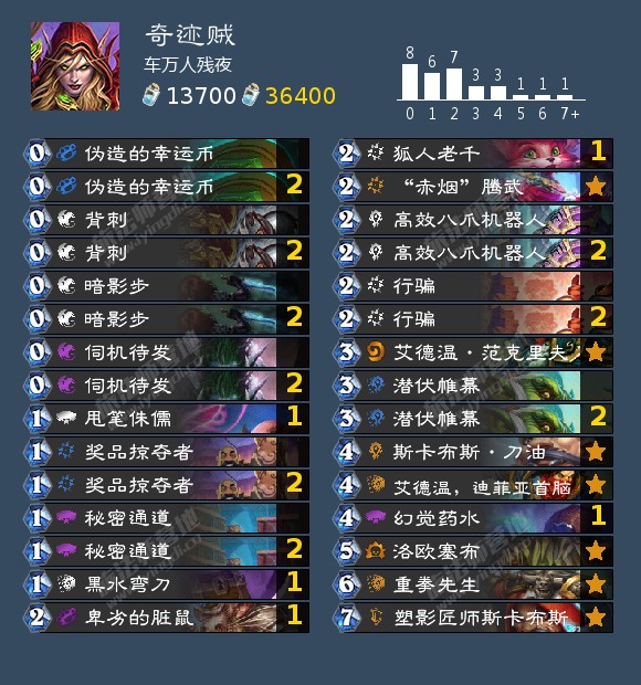 奇迹贼作为炉石传说的元老卡组一直在版本更迭中变化着自己的模样,【车万人残夜】使用的双范体系和佣兵牌,在超展开中更加具有优势,而【ctailor】则带上了针对卡来针对环境中的其他职业。