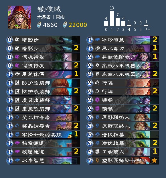 来自【无冕者丨夏雨】的锁喉贼,他用这套卡组最高打到了传说38名