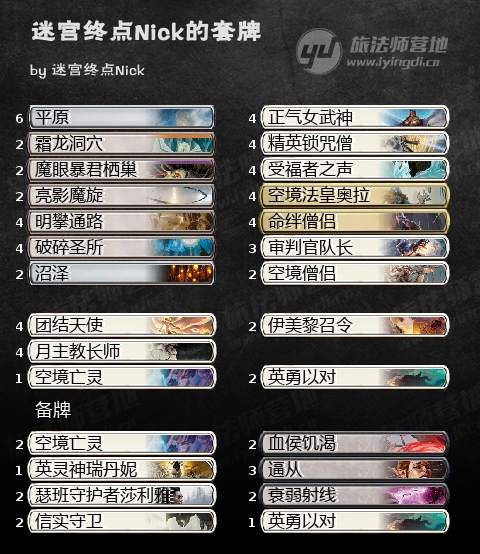 除了空境亡灵,这套牌中的所有生物都是冒险团类别。团结天使自身系命都同时还能膨胀其他生物。这牌乍看之下有些不起眼,但是它确实不错的。