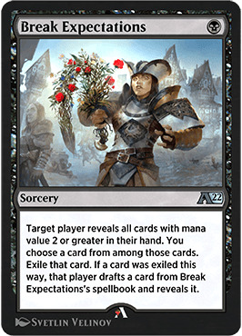 我的对手在备牌局的时候换上了这张牌来打我,表现很不错,能扔掉我的烈火断层、记忆奔腾、跨金桥巨龙、闷燃龙卵,但我额外拿回的牌却帮我赢下了对局,因为它给我了两张刺坑陷阱,让我在后期去除掉了对面的正气女武神和奥拉。这是个不错的弃牌咒语,但是缺陷也比看起来的大。 (犀牛:请用攫取思绪对不起炼金没有思绪)