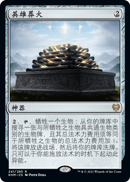 如果你想给这套牌加点调味,可以尝试放一张英雄葬火。这牌没法让你激活诞生荚那样疯狂的Combo,但是奥拉在场的时候它能帮你产生更多的价值。