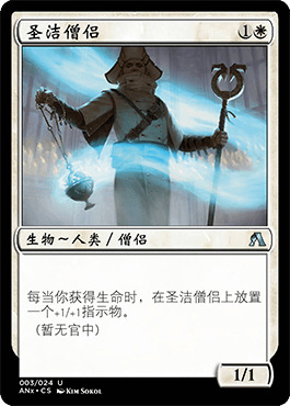 我打第一场炼金比赛的时候,不小心进了Play模式。我的对手是个白色加血套牌,我本以为可以快速获胜。三局激烈的对局后我只以微弱的优势赢得了比赛。尽管之前白色回血套确实竞争力不够,但我的对手的套牌看起来相当不错,因此我决定也仿制一套,这也是这篇文章的由来。隆重介绍我们今天的主角——黑白僧侣,炼金Day1的绝对强牌,打其它生物套非常优秀,打控制套也很有韧性。
