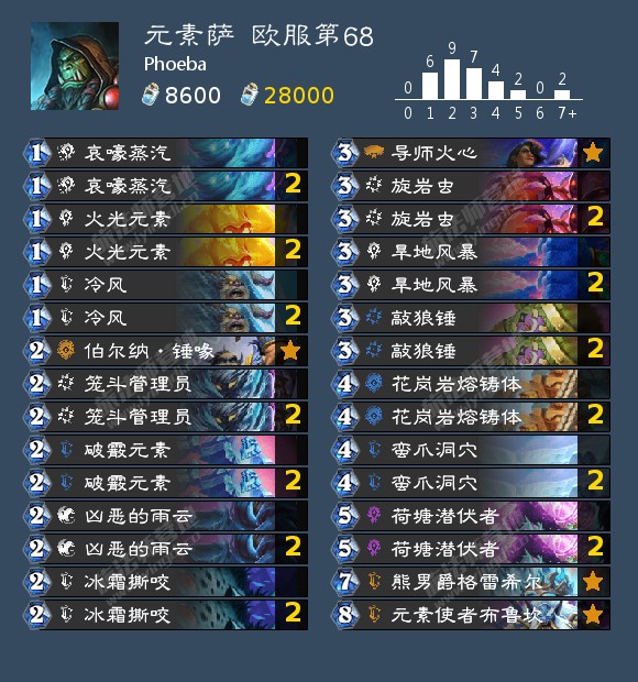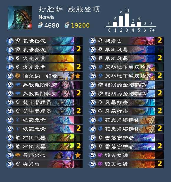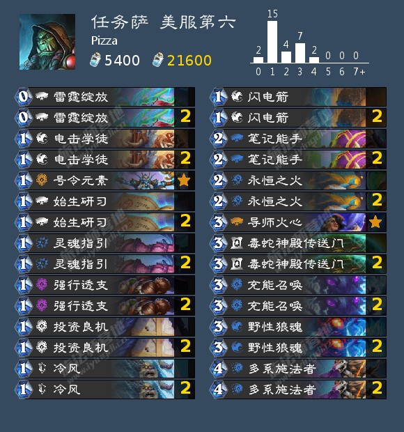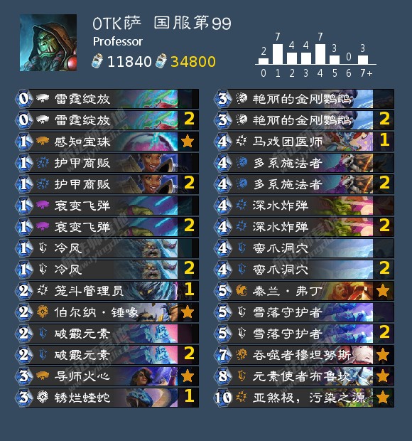 值得一提的是,现在这两种萨满的构筑差距正在不断减小,OTK冰萨的构筑越来越节奏化。这主要是因为冰萨的OTK确实又慢组件又多,所以必须要一些打节奏的卡来以攻代守或者是提供另一个获胜手段。现在看来,蛮爪洞穴是OTK冰萨构筑中的“最新红人”,甚至有一些玩家带上了战场军官。让我们一起期待这套卡组在未来的发展吧!